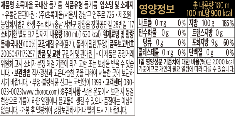 2025-3-28신선한 국내산 들깨만 엄선합니다. 3번 이상 선별한 후 볶아 고소한 풍미가 진합니다. 저온에서 딱 한 번 짜내 기름이 맑고 깨끗합니다. 벤조피렌 검사까지 정기적으로 실시해서 안심하고 먹을 수 있어요. 국수, 무침, 볶음 등 다양한 요리에 곁들여 먹음직스러운 향을 더해보세요. 소용량인 180ml라 부담 없이 사용하기 좋습니다.