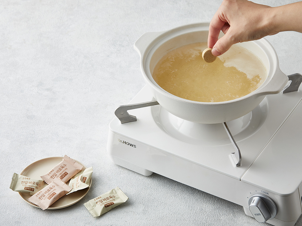 초록마을 한알바로육수와 함께 조리해 드시면 손쉽게 맛있는 어묵탕을 즐기실 수 있습니다. 한알바로육수를 물에 넣고 끓인 후, 꼬치 어묵을 넣고 익혀주기만 하면 완성이에요.