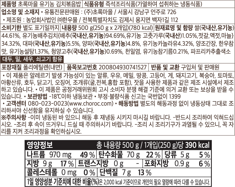 | 제품명 | 유기농 김치볶음밥(250gx2개입) |