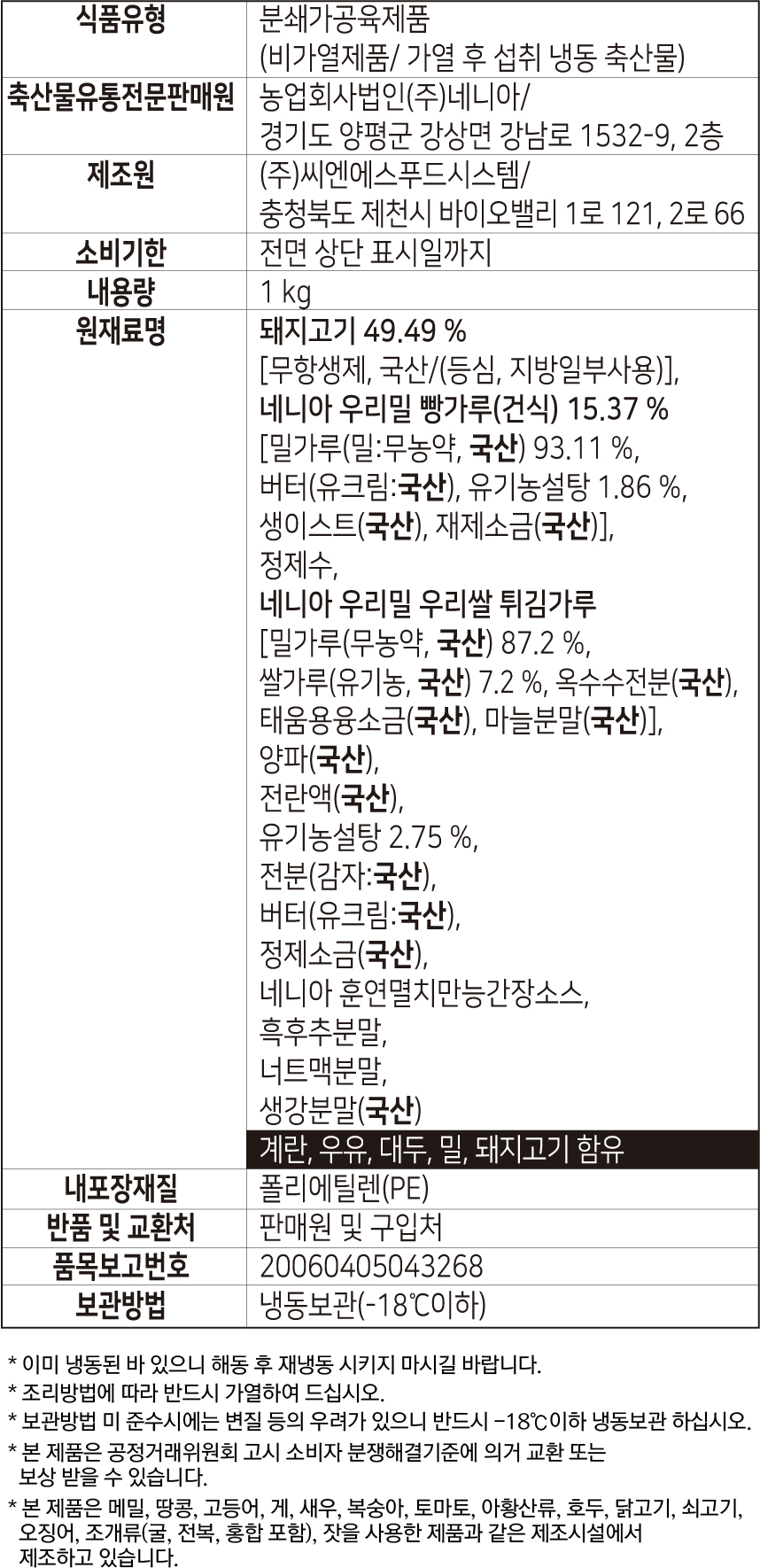 | 제품명 | 네니아 한입등심돈까스(1kg) |